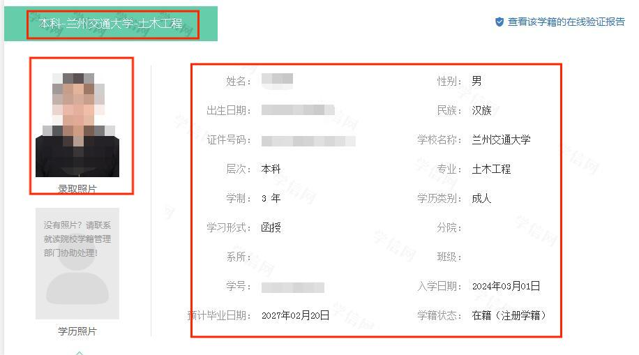 大家好,兰州交通大学2024级新生学信网学籍信息查询已经开始,各位同学可以按照以下操作指引在学信网进行新生学籍信息查询。如有问题,请及时联系班主任老师!