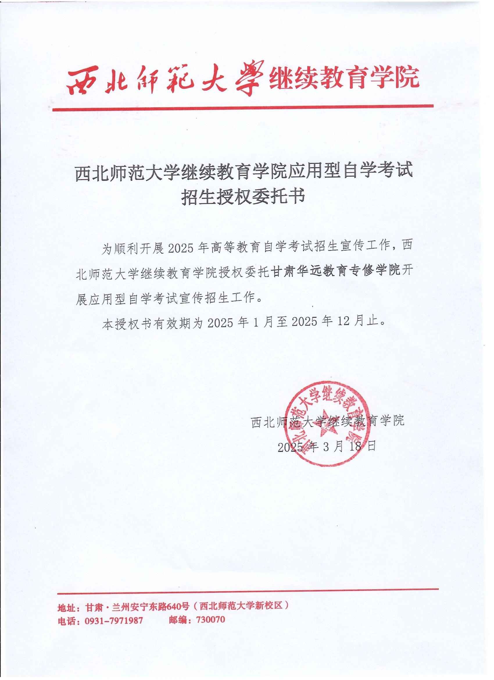 西北师范大学继续教育学院(职业技术师范学院、兰州企业管理培训中心),是我校从事成人高等学历教育和继续教育、职业技术教育的办学实体,又是全校成人学历教育、继续教育、职业技术教育、自学考试辅导的宏观管理职能部门。学校可以在各普通本科专业开办函授、业余、自学考试辅导等形式的成人高等学历教育,办学形式有函授、业余、自学考试、职业技术教育、大学后继续教育、短期培训等。办学层次有高中起点专科、专科起点本科、高中起点本科、研究生班等。目前各类在校学生10000余人。
